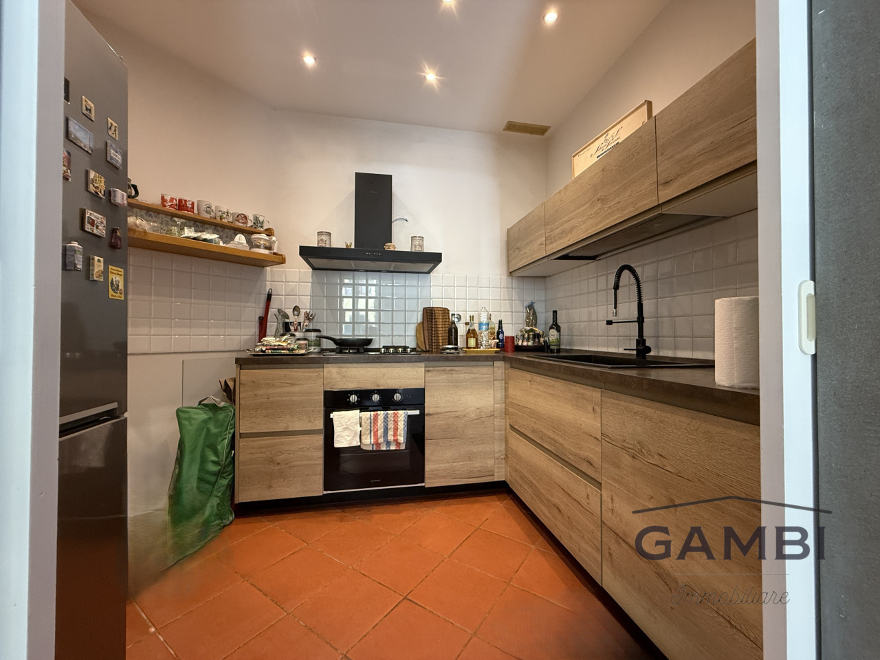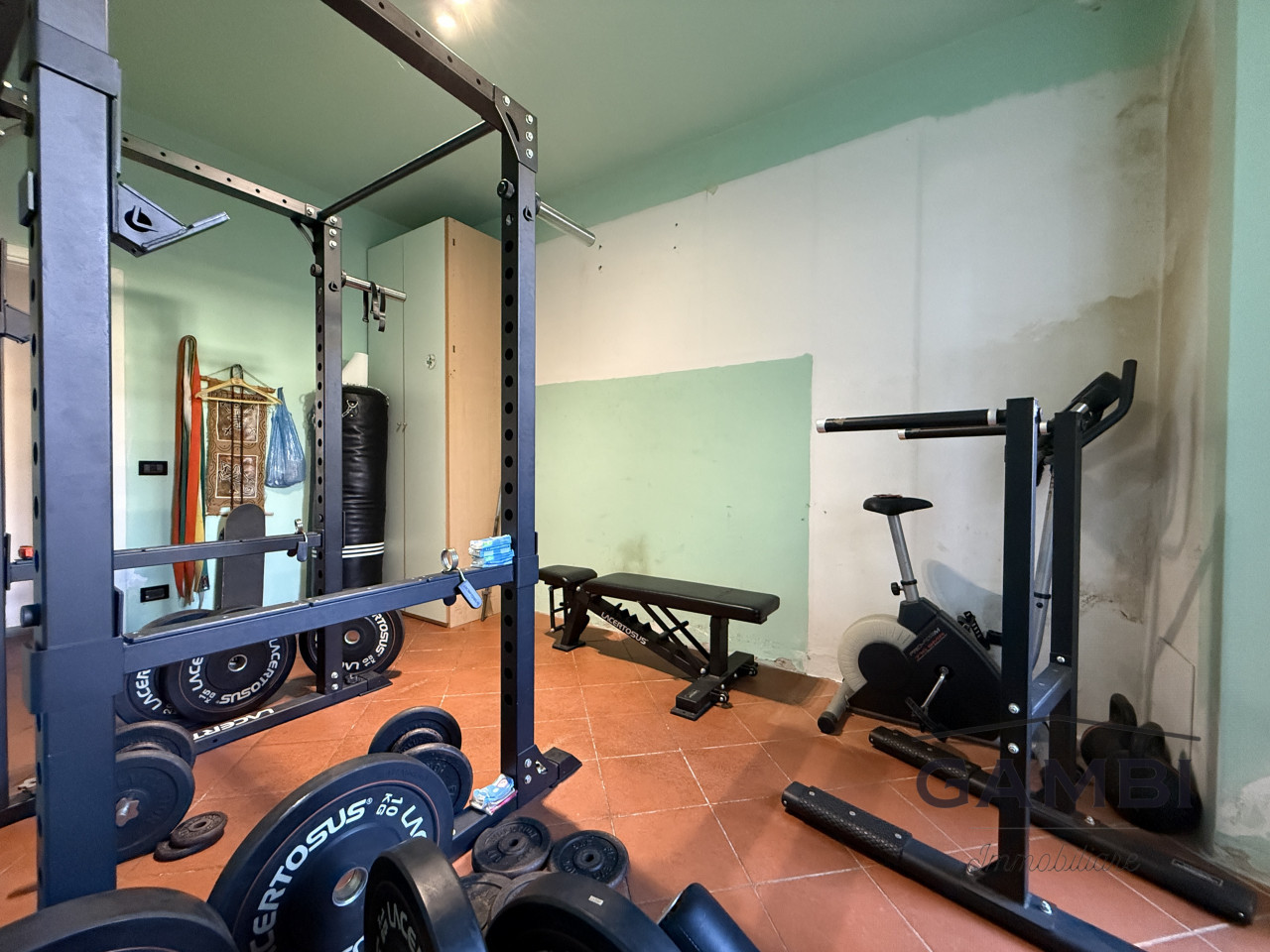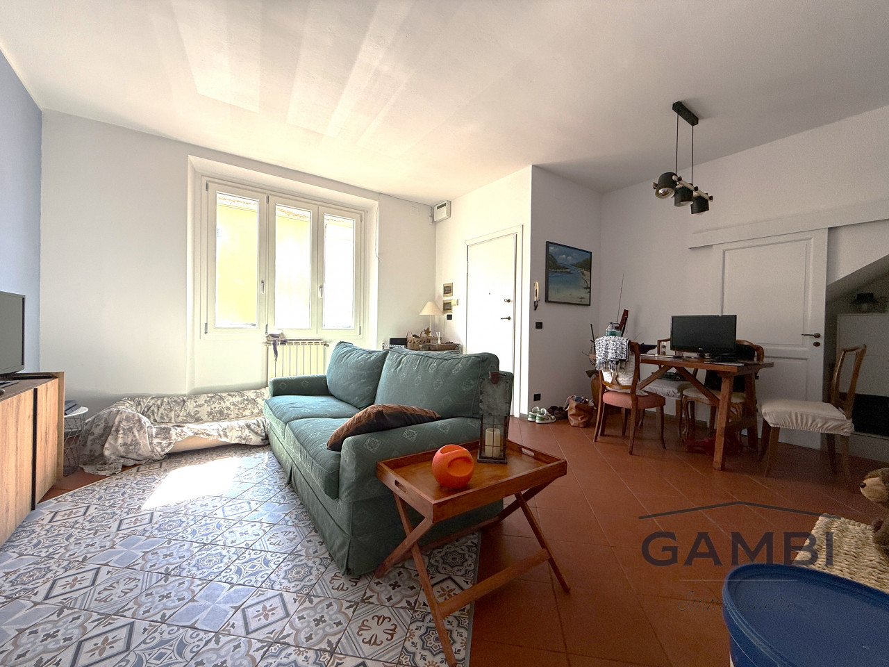 La zona giorno si apre su un ampio e luminoso soggiorno con adiacente cucinotto, perfetto per mantenere i due ambienti separati senza rinunciare alla convivialità. Dalla sala, attraverso una rampa di scale è possibile accedere alla taverna ed al ripostiglio.